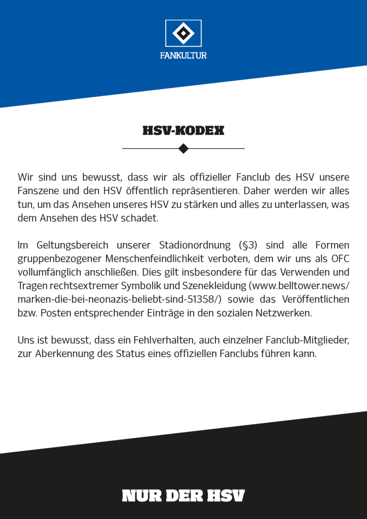 Außerdem möchten wir sicherstellen, dass neue Mitglieder zu 100 % hinter dem HSV stehen. Das entspricht auch dem von den Supporters